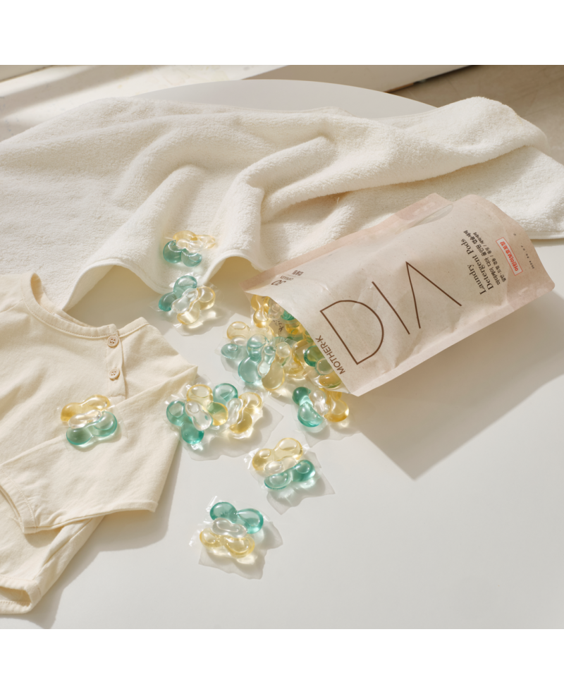 Patogus, efektyvus ir saugus skalbimas su Mother-K DIA skalbimo kapsulėmis. Viena kapsulė – ir drabužiai švarūs, gaiviai kvepiantys bei apsaugoti nuo spalvų blukimo.